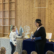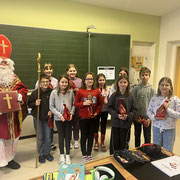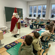 Pünktlich, am 6. Dezember, und passend zum Themenbereich "Brauchtum und Tradition" in Sachunterricht, besuchte uns in diesem Schuljahr der ehrenwerte Nikolaus. Die Kinder waren erstaunt, was so alles in seinem großen, roten Buch über sie stand und freuten sich über die Gaben, die er an alle verteilte.