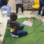 erzählen. Unter fachkundiger Anleitung wurden im Klassenraum kleine Schätze ausgegraben, Fundstücke gemessen und skizziert.